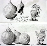 1985Eén van mijn eerste cartoons. Eentje uit de oude doos. Precieze jaartal onbekend maar getekend in een periode dat ik waarschijnlijk nog aan het puberen was vandaar het cynisme en de titel - black hole. Ik schat de ouderdom op midden jaren tachtig.